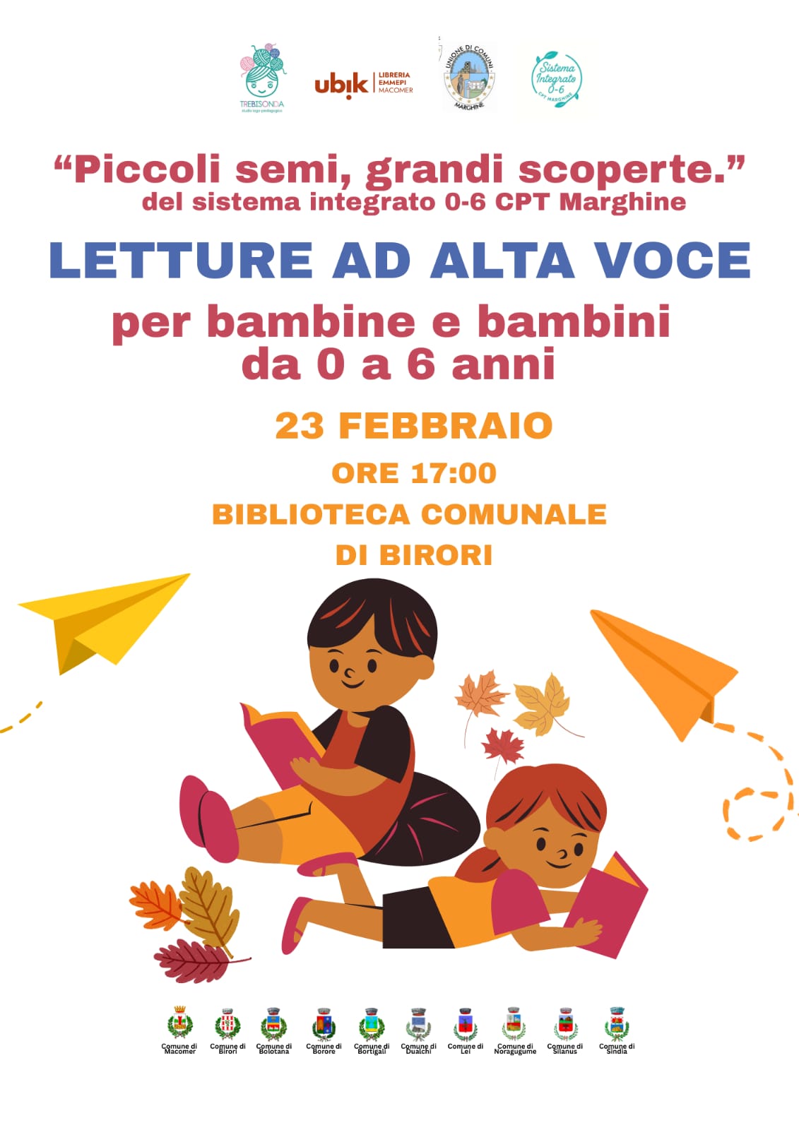 Lunedì 23 febbraio, alle ore 17:00, la biblioteca ospiterà un incontro speciale dedicato a bambini e famiglie, nell’ambito del progetto “Letture ad alta voce”, promosso dal CPT Marghine — Sistema integrato 0–6.